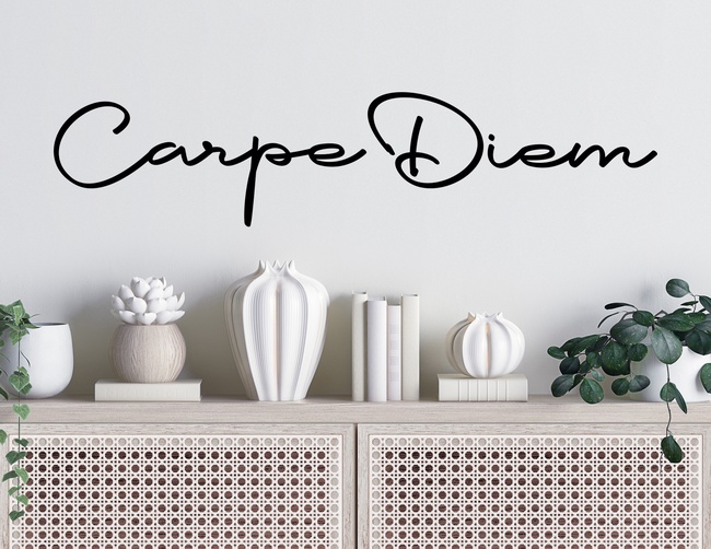Das Wandtattoo ist die perfekte Dekoration z.B. für den Flur, die Küche oder das Wohnzimmer und überall dort, wo wir den extra Schub an Motivation gut gebrauchen können – Wandtattoo: "Carpe Diem Lettering"! Hättest Du's gewusst: "Carpe Diem" ist eine lateinische Wortfolge, welche vom antiken Dichter Horaz stammt und lässt sich einfach übersetzen mit 'Nutze den Tag' oder 'Genieße den Augenblick'.
