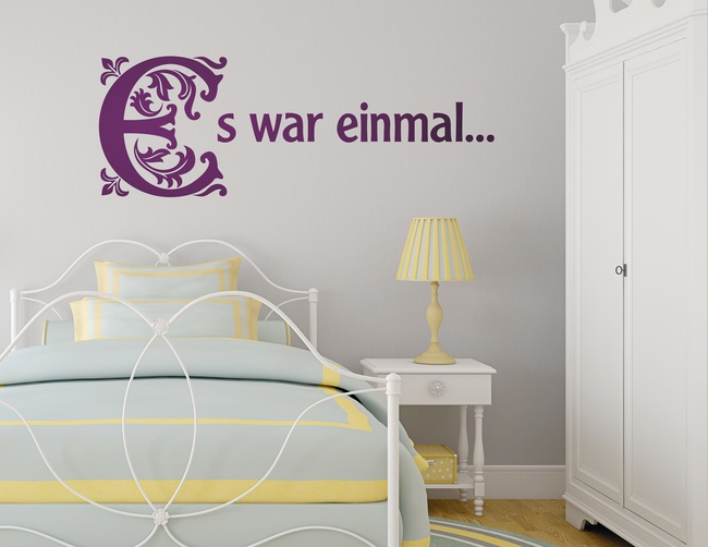 Mit diesen drei Worten beginnt jedes gute Märchen – und bald vielleicht auch Deins: Unser fabelhaftes Wandtattoo "Es war einmal…". Dieses schöne Motiv besteht aus einer fein verzierten Initiale, wie aus einem alten Buch, und einem zeitlos-schlichten Schriftzug. In Märchen geht es um Liebe, Moral, das Gute und das Böse. Hexen, Drachen, Zauberkunst, sprechende Tiere, fliegende Teppiche, Elfen – einfach alles ist möglich. Dabei waren Märchen, auch die der Gebrüder Grimm, ursprünglich für Erwachsene gedacht. Erst Mitte des 19. Jahrhunderts wurden Erzählungen aufgeschrieben und durch ihre irrationalen Ideen und Fantasien der Kinderliteratur zugeordnet. So endet auch dieser kurze Text wie im Märchen… "Und wenn sie nicht gestorben sind, dann leben sie noch heute!"