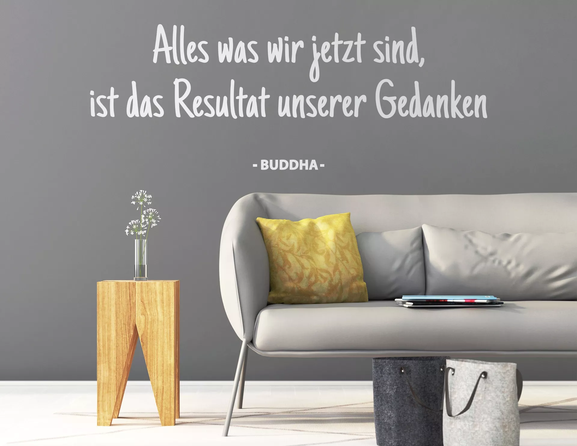 Das Wandtattoo "Gedankenwelt" mit dem Zitat: "Alles was wir sind, ist das Resultat unserer Gedanken" bringt ein bißchen Zen-Weisheit in unser tägliches Leben. Heute zählen diese Textzeilen zu den Grundlehren der buddhistischen Philosophie. Sie stammen von Gautama Buddha, der für viele Menschen als Begründer des Buddhismus gilt.
