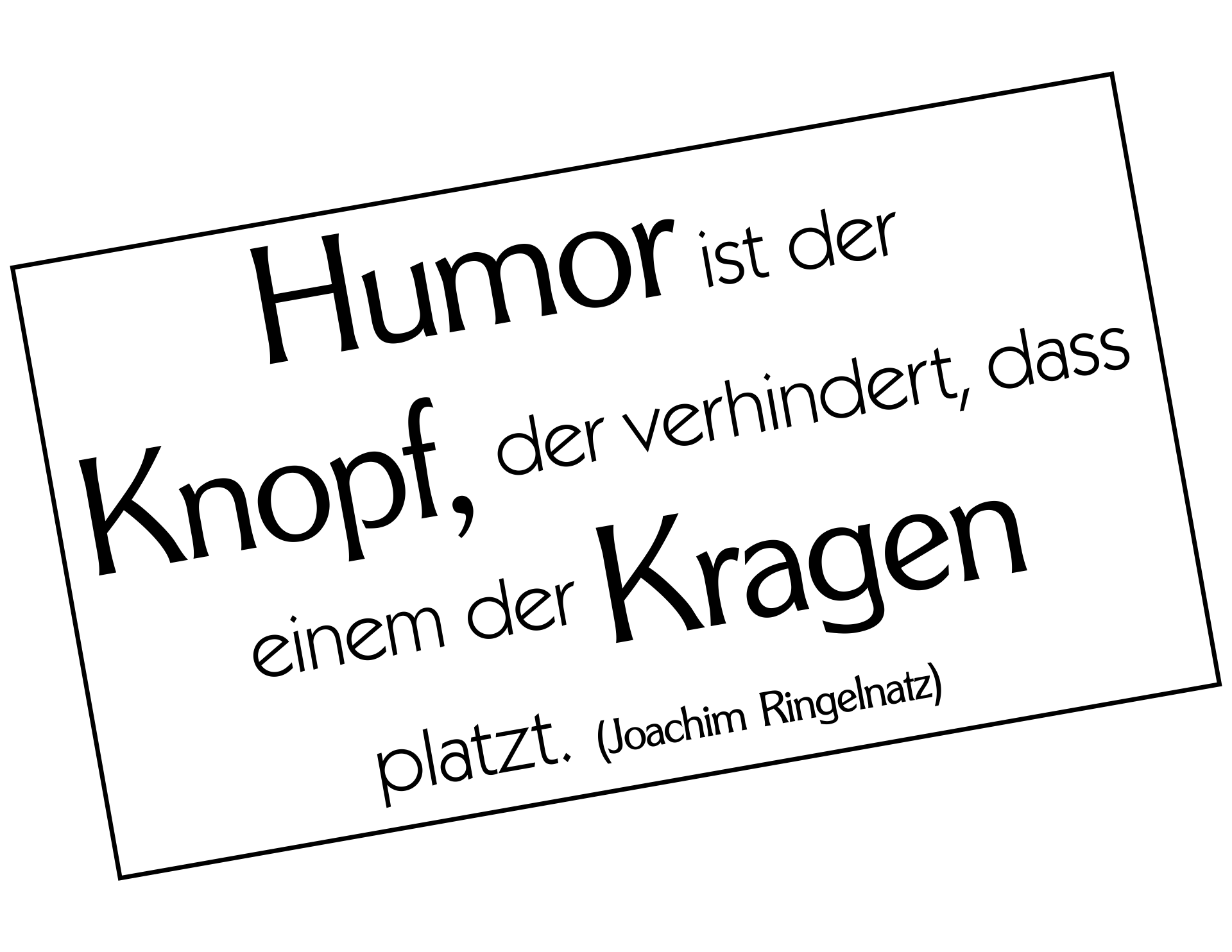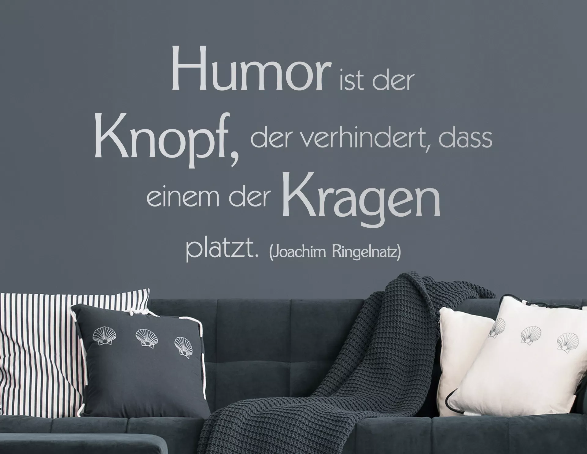 Nicht alles so ernst nehmen, Probleme weglachen und ihnen mit Humor begegnen: Lachen hilft, manche unangenehme Situation zu entschärfen und als Gemeinschaft zu überstehen. Das hat schon der Dichter Joachim Ringelnatz erkannt, dessen Zitat wir hier als schöne Dekoration aufbereitet haben. "Humor ist der Knopf, der verhindert, dass einem der Kragen platzt" ist eine tägliche Erinnerung daran, dass Humor nicht nur im Umgang mit anderen Menschen hilft, sondern zugleich auch der Gesundheit außerordentlich gut tut.