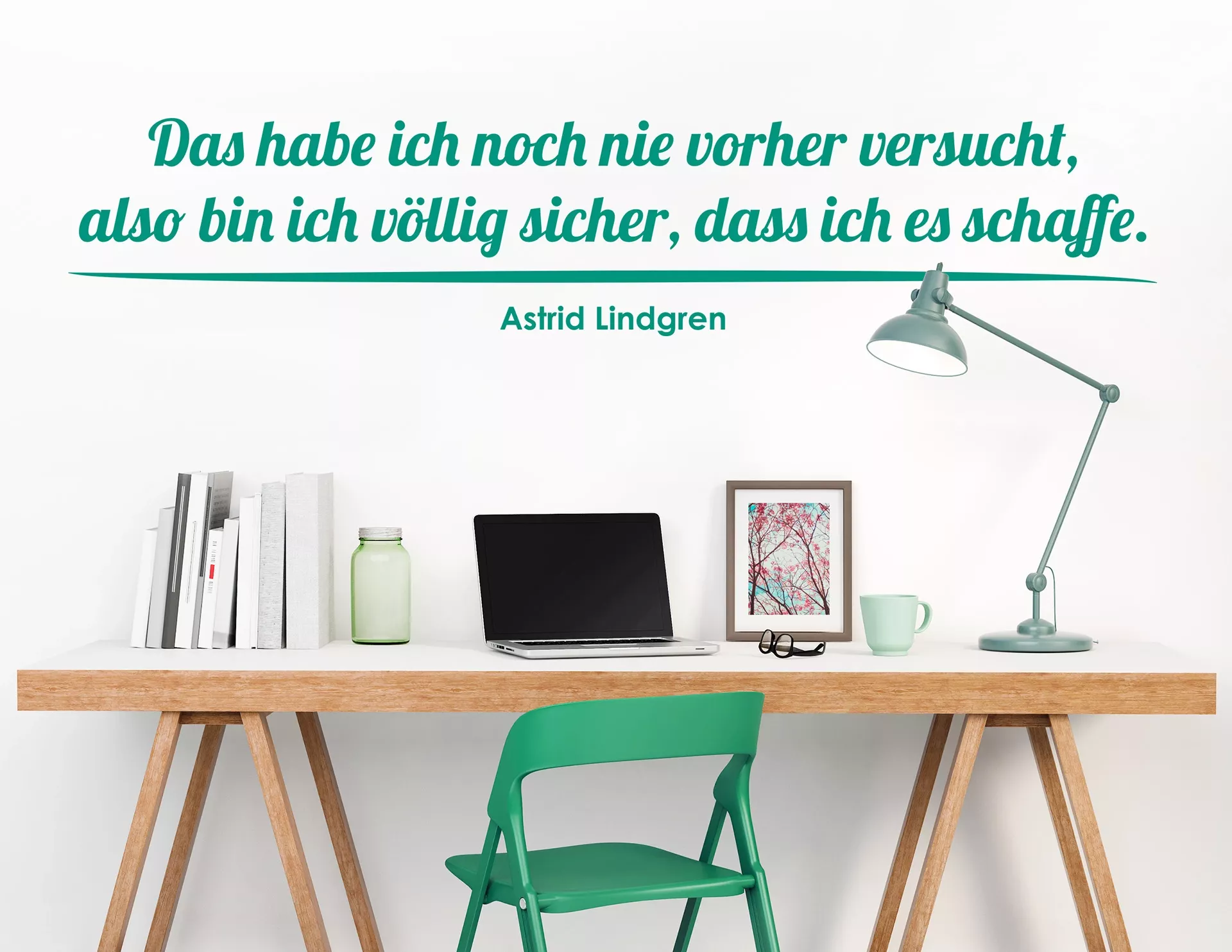 Das Zitat von Astrid Lindgren „Das habe ich noch nie vorher versucht, also bin ich völlig sicher, dass ich es schaffe“ sorgt für eine große Portion Selbstbewusstsein im Alltag. Viel zu oft unterschätzt man sich selbst und ist der festen Überzeugung, Dinge nicht erreichen oder bewerkstelligen zu können. Mit unserem Wandtattoo „Noch nie versucht“ hat das ein Ende! Gekonnt in der Wohnung platziert erinnert es Dich jeden Tag daran, welch Stärke in Dir schlummert und dass Du alles schaffen kannst, wenn Du es nur möchtest. Lass‘ Dir von dem Wandtattoo nicht nur jeden Tag versüßen, sondern auch Kraft und Ausdauer für all Deine Pläne verleihen. Ein Ansporn ohnegleichen!