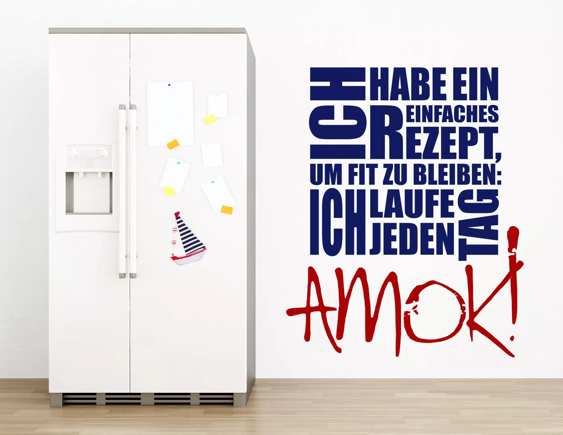 Manch einer geht schwimmen, andere machen Yoga oder spielen Mau-Mau! Ich laufe jeden Tag. Yeaaahhh… Ungewöhnliche Sprüche als Wandsticker bestellen.