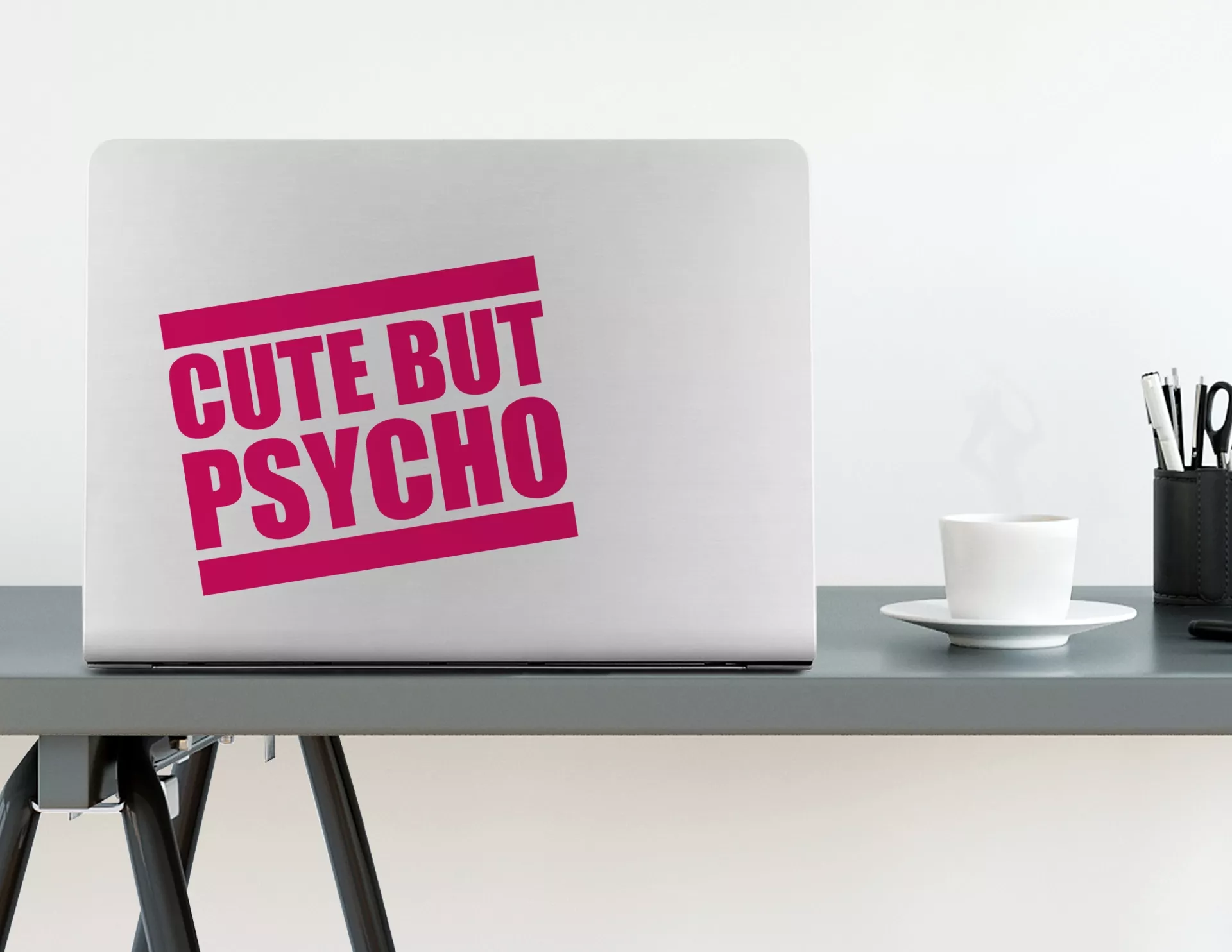Gefällt Dir, was Du siehst? Niedlich oder? Nun, das ist leider nicht alles! Hier ist nämlich jemand 'CUTE BUT PSYCHO' (zu dt.: süß aber irre)! Dieses Motto ist aber nicht nur als GRL-PWR Statement zu verstehen, sondern auch als Warnung – Wandtattoo 'Cute but Psycho', kommt richtig gut z.B. auf dem Laptop, der Wand, dem Kühlschrank, der Tür oder sonst wo...