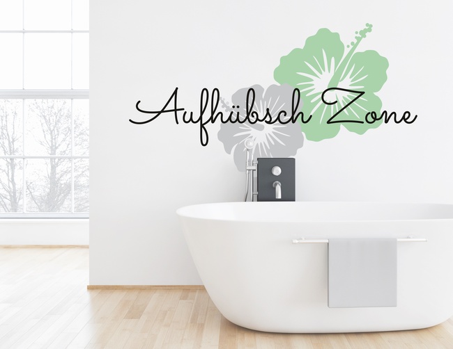 Wandtattoo „Aufhübsch Zone“ mit Hibiskus für die Schminkecke