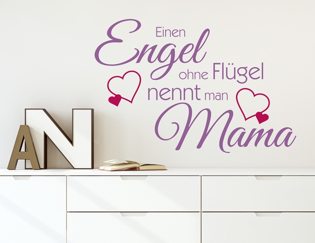 Eine Liebesbotschaft an unsere Mama ist das süße Wandtattoo mit einer besonders liebenswerten Message: Einen Engel ohne Flügel nennt man Mama.