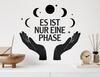 Moon Power: Dieses Design gibt blanken Wänden sofort etwas Magisches. Dabei scheint der Spruch samt Monden und vieler Sterne über den beiden Händen zu schweben. Für Freunde der Nacht und Fans universeller Kraft zeigt das Wandtattoo die Mondstadien, von zunehmend über Vollmond bis abnehmend. Und ja, es ist nur eine Phase – wie alles im Leben und das Leben selbst. Eine schöne Dekoration, die uns daran erinnert, den Humor nicht zu verlieren und motiviert in die Zukunft zu schauen. Wandtattoo Es ist nur eine Phase – c’est la vie.