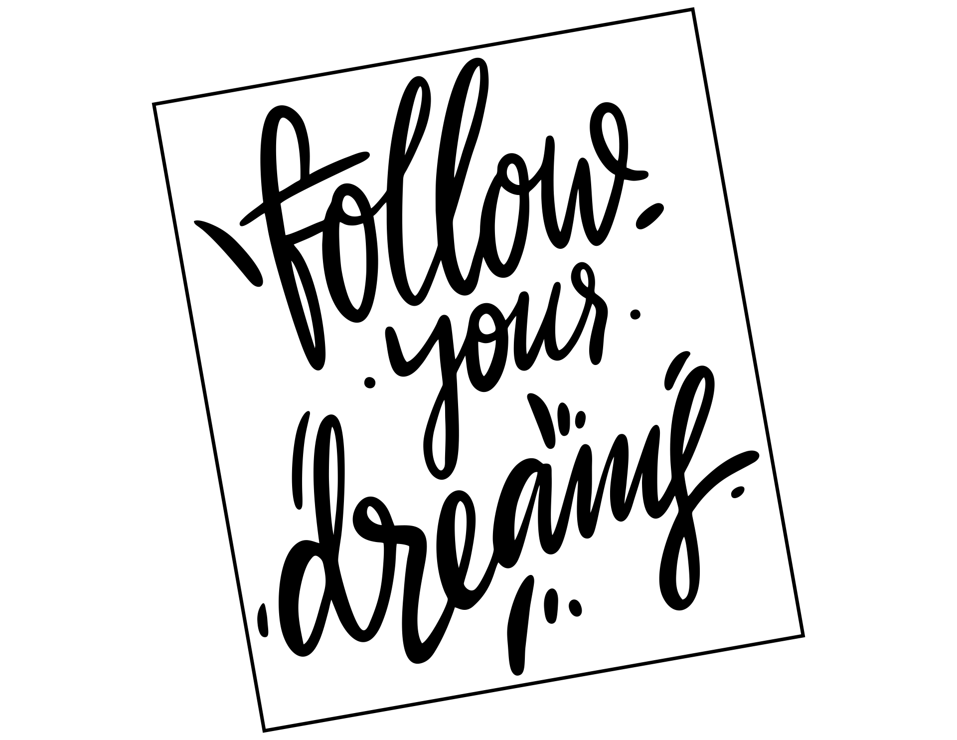 Wandtattoo "Follow your dreams": ein kreatives und motivierendes Text-Design im Handlettering-Stil mit vielen kleinen graphischen Details.