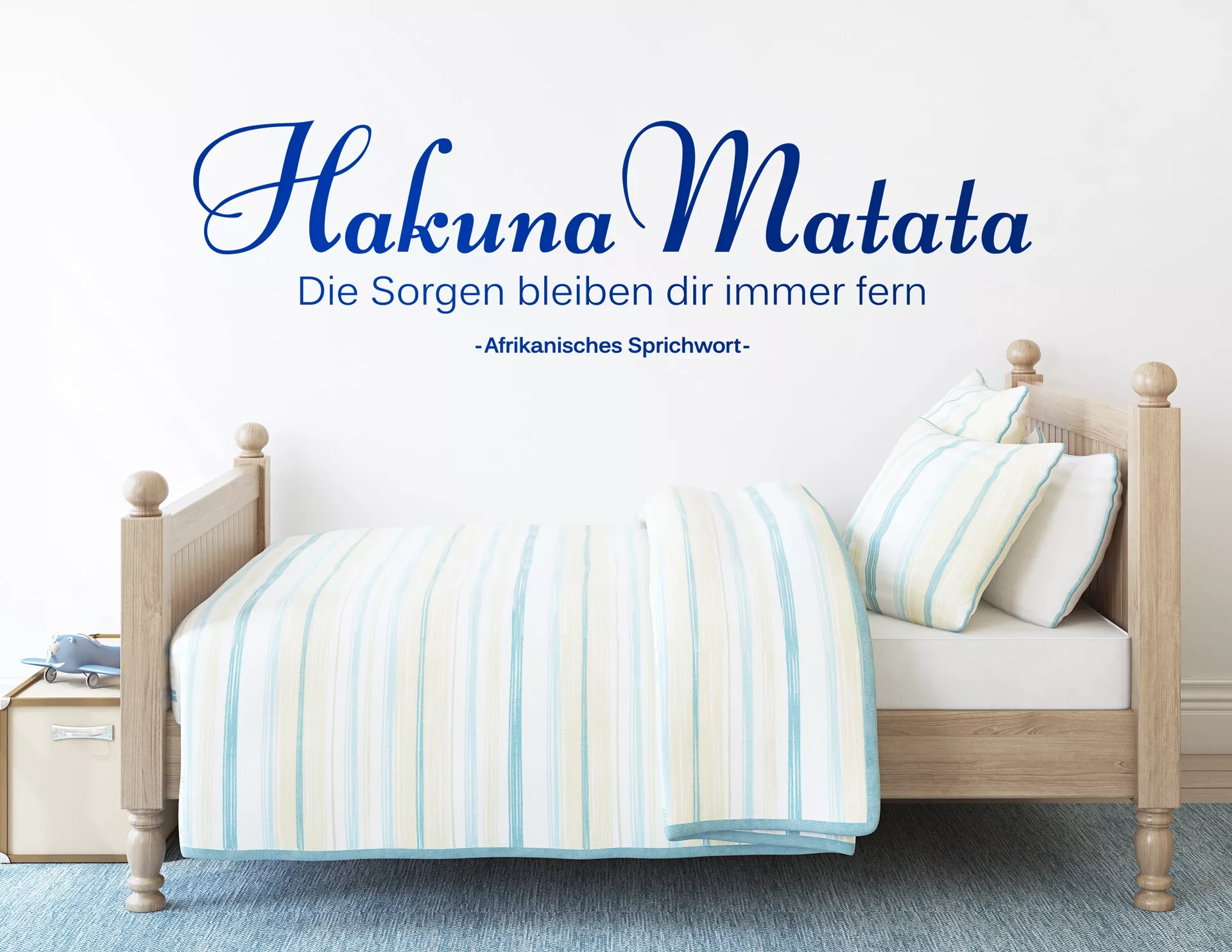 Hier ist was im Busch! Wandtattoo "Hakuna Matata" – die sorgenfreie Lebensphilosophie aus Afrika. Übersetzt heißt der Satz so viel wie "Die Sorgen bleiben dir immer fern". Ein lebensfroher Motivationsspruch für Groß und Klein. Hättest Du's gewusst: "Hakuna Matata" ist auch ein Lied aus dem Disney-Film "Der König der Löwen" – in voller Zuversicht gesungen vom kleinen Löwen Simba, seinen Freunden Timon dem Erdmännchen und Pumbaa dem Wildschwein.