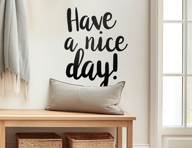 Das Wandtattoo „Have a nice day“ in englischer Sprache ist eine trendige Wandverschönerung im modernen Design. 'Hab' einen schönen Tag!', das ist die Aussage dieser Redewendung, die sofort ein Lächeln in unsere Gesichter zaubert.