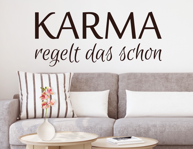 „KARMA regelt das schon!“ Ein Spruch mit beeindruckender Wirkung. Ob im Wohnzimmer oder Flur: Gäste und Familie werden täglich daran erinnert, dass jede Handlung zählt. Hättest Du`s gewusst? Der Begriff Karma kommt aus dem Altindischen - dem Sanskrit. Das Konzept des Karmas besagt, dass jede Handlung, gut wie schlecht, eine Folge hat. Die Konsequenz aus unserem heutigen Handeln kann sich aber auch erst in einem zukünftigen Leben wiederfinden. Lassen wir es nicht drauf ankommen!