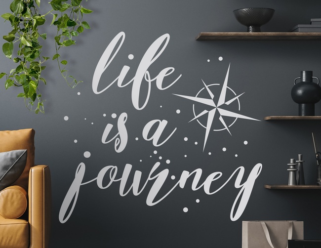 Bereit für ein neues Abenteuer, direkt bei Dir Zuhause? Unser liebevoll gestaltetes Wandtattoo Life is a journey, bringt das Gefühl der Freiheit direkt zu Dir. Mit dem handgeschriebenen Design, einem stilvollen Kompass und kreativen Tintenklecksen, verleihst Du Deinen Wänden einen einzigartigen Touch. Ob Du dabei an vergangene Reisen erinnerst oder Pläne für künftige Abenteuer schmiedest, mit diesem Wandtattoo ist die Reiselust stets präsent. Bereit, Deinem Zuhause eine individuelle Note zu verleihen? Dann ist dieses Wandtattoo genau das Richtige für Dich!