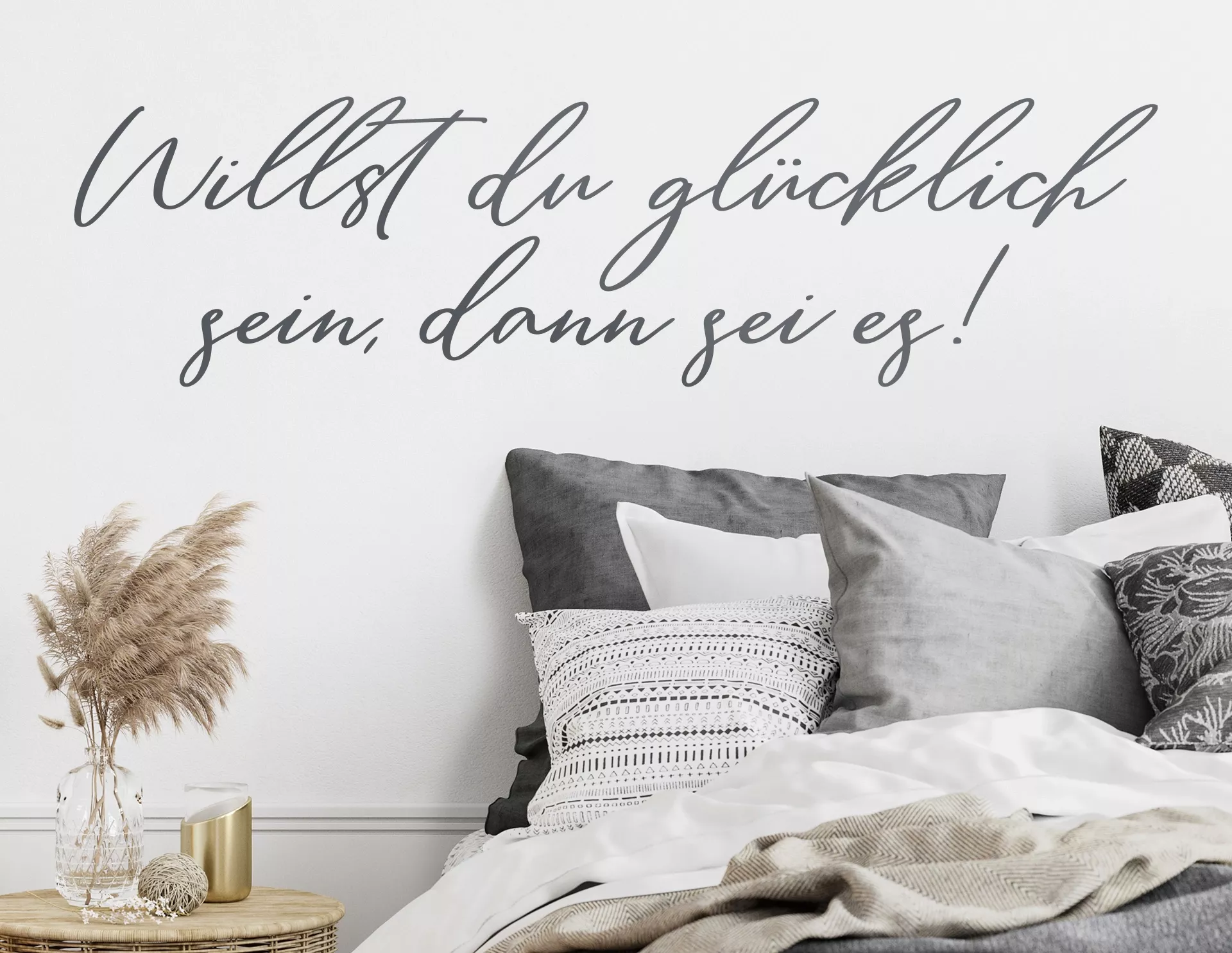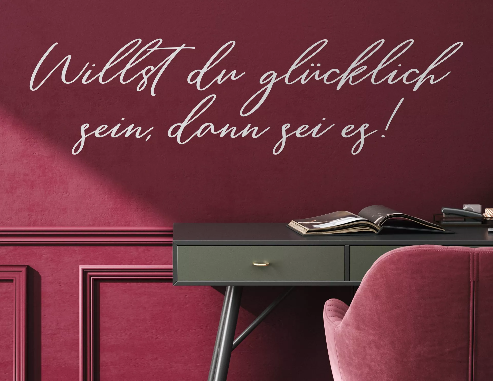 Der beste Rat, den man befolgen kann? Sei glücklich! Natürlich ist das nicht immer so einfach umzusetzen, wenn der Alltag kaum Zeit für Überlegungen oder Veränderungen lässt. Aber dann kommt unser Wandtattoo mit dem Spruch "Willst du glücklich sein, dann sei es!" ins Spiel. Als tägliche Erinnerung sorgt die hübsche Dekoration dafür, dass man diese Lebensregel verinnerlicht und weiter am eigenen Glück arbeiten kann. Und was könnte sinnvoller sein, als dem Rat, glücklich zu sein, zu folgen?!