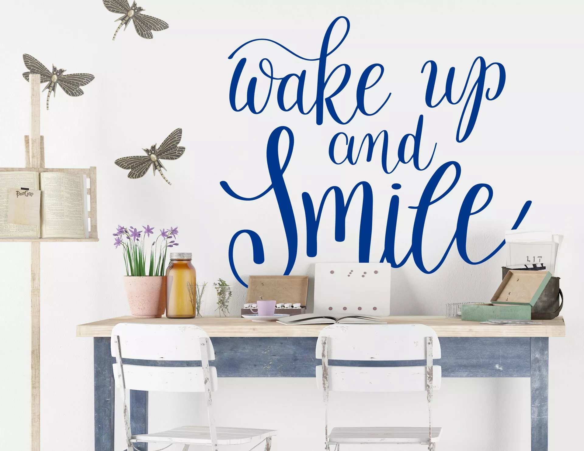 Das Wandtattoo „Wake up & Smile“ ist die perfekte Ergänzung für alle Morgenmuffel. Es hilft, mit Freude und Elan in den Tag zu starten.