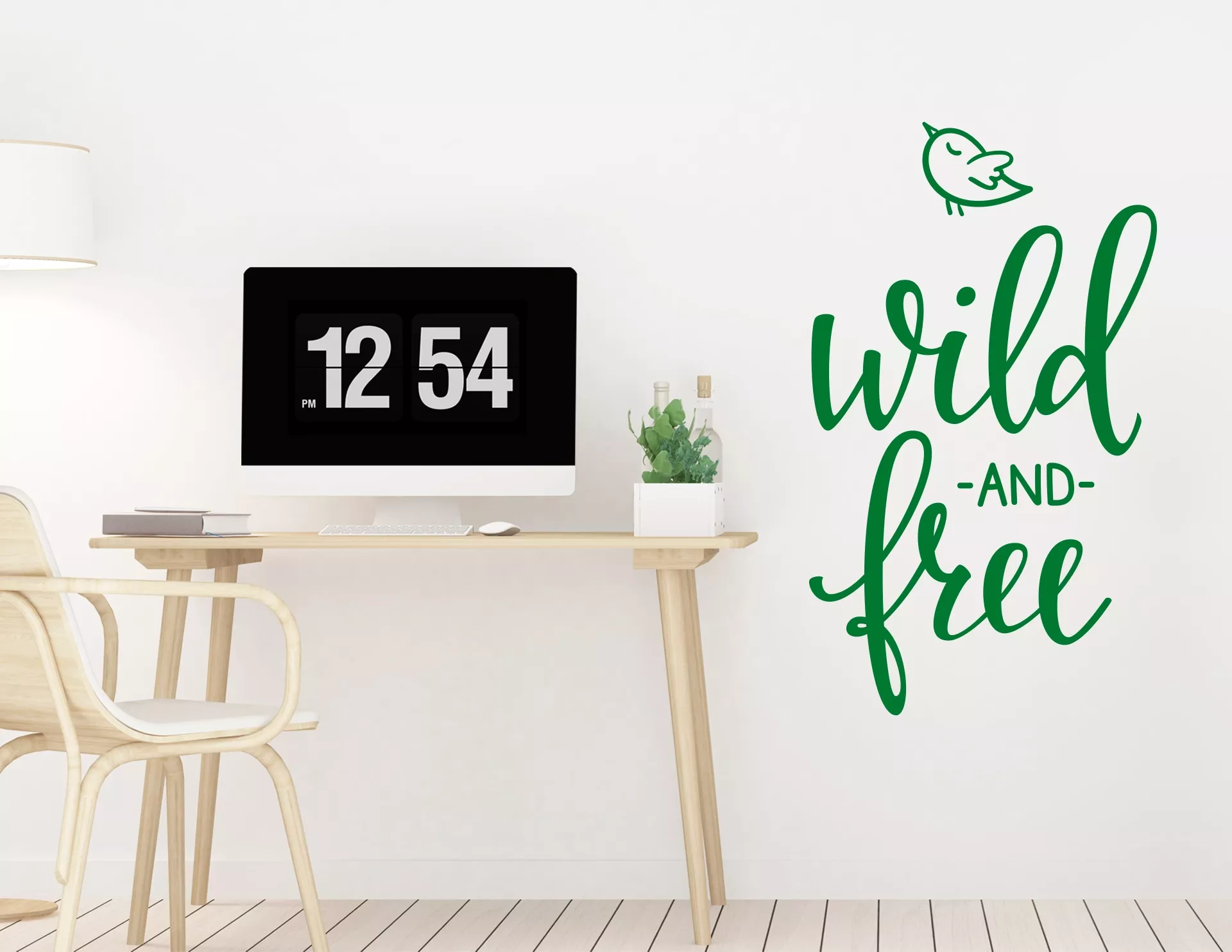Das Wandtattoo „Wild and free“ ist ein positiver Wandspruch für freie Wandflächen. Der Spruch ist von einer modern schwungvollen Handschrift gekennzeichnet. Zudem setzt der kleine Vogel einen niedlichen und lebendigen Dekoakzent. Eine Wandverschönerung die die Blicke auf sich ziehen und für eine harmonischere Raumatmosphäre in Deinem Heim sorgen wird!