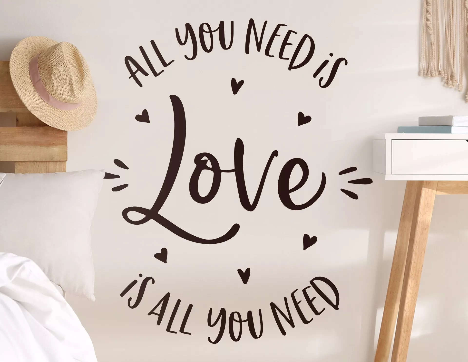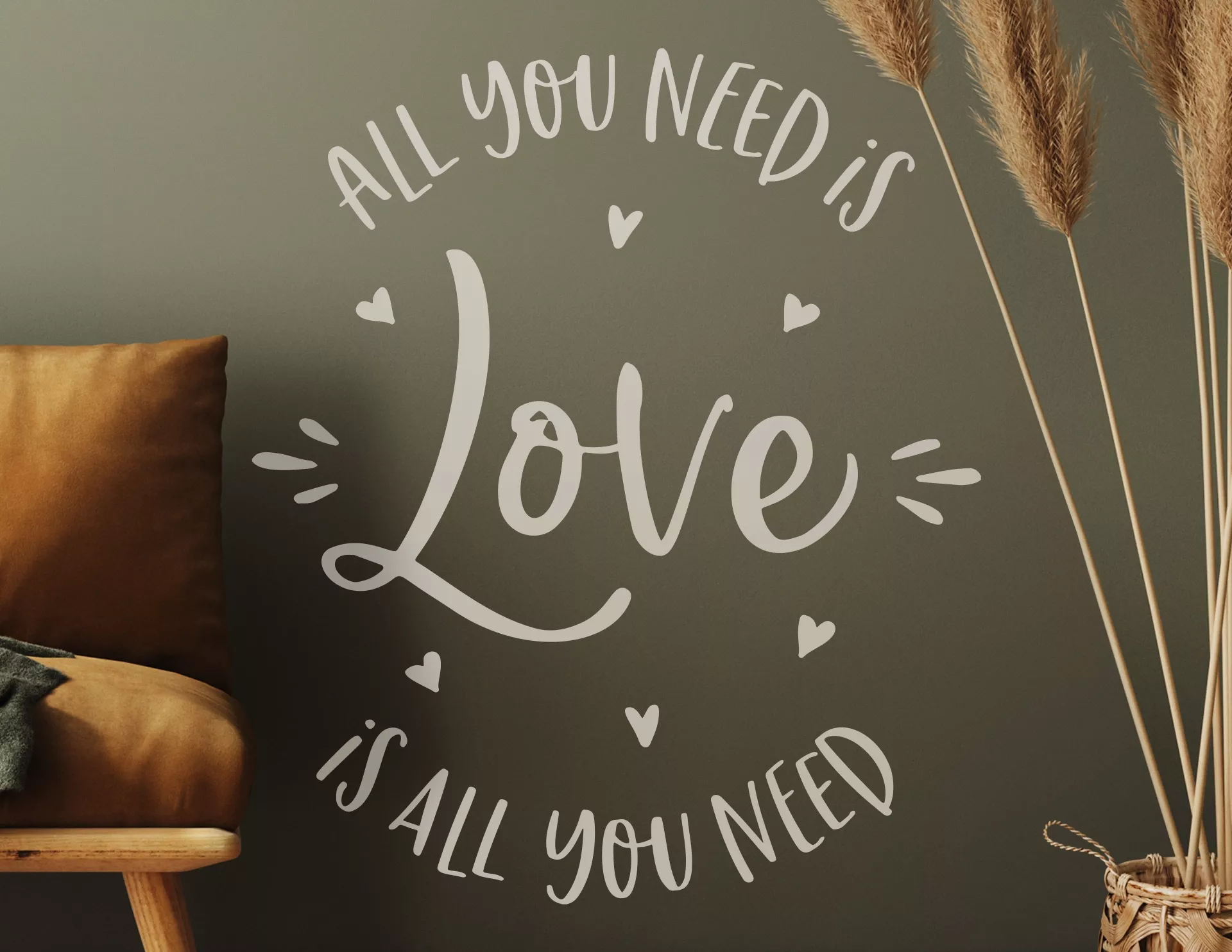 Wer bei dieser Textzeile nicht spontan mitsummen kann, sollte schnell einen Auffrischungskurs in Beatleskunde buchen. Denn der Song, 1967 erstmals erschienen, ist ein Evergreen und heute so aktuell wie damals. Die Aussage "Alles was es braucht ist Liebe" ist daher in jedem Haushalt gerne gesehen. Und mit dem Wandtattoo "All you need ist love, love is all you need" samt Herzen fällt die liebevolle Dekoration dann nicht mehr schwer. Ein perfekter Spruch für Schlafzimmer, Flur oder Jugendzimmer.