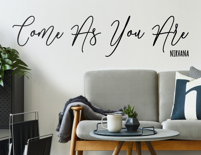 Sei wie du bist, das war eine der Maximen des Grunge Rocks. Und die Speerspitze dieses Musikstils war Nirvana. Kein Verstellen, keine glitzernden Klamotten und keine auftoupierten Haare mehr – es zählte nur die Musik. Und die hatte es in sich, den Nirvanas zweite Platte sorgte für einen regelrechten Umbruch in der Gitarrenmusik. Auf dem Überalbum Nevermind befindet sich der Song "Come As You Are", den es bei uns als ultracooles Wandtattoo gibt. Perfekt für die Studentenbude, das Jugendzimmer und generell für alle, die die 90er Jahre gerade so abfeiern wie wir.