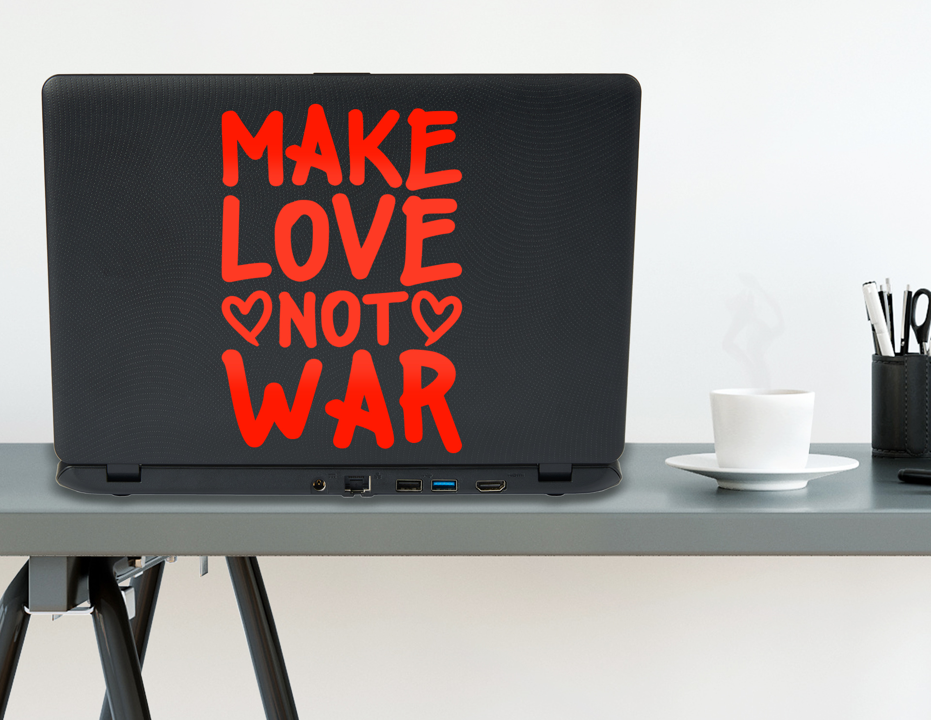 In Vinylfolie gebannt! 'MAKE LOVE NOT WAR' – 'Mach Liebe, keinen Krieg'! Ein klares Statement welches beweist, dass es wichtig ist, Haltung zu zeigen und uns daran erinnert, den Friedensgedanken niemals aus den Augen zu verlieren! Wenn auch Du ein Zeichen für mehr 'Love and Peace' stetzen möchtest, kannst Du dies mit unserem Text-Design samt zweier Herzen tun… Einfach auf Wand, Türe oder Laptop kleben und sich dem Appell anschließen – Wandtattoo "Make Love Not War Hearts". Hättest Du's gewusst: In den späten 1960er Jahren nutzte die Hippie- und Antikriegsbewegung diesen Slogan um gegen den Kalten Krieg und den Vietnamkrieg zu protestierten. Weltweit bekannt wurde dieser Protest-Ausspruch durch den Beatles-Musiker John Lennon und die japanische Avantgarde-Künstlerin Yoko Ono. Das Künstler-Ehepaar appellierte demonstrativ an die Erinnerung des Menschen mit den Worten: "Love is the answer, and you know that it's true!"