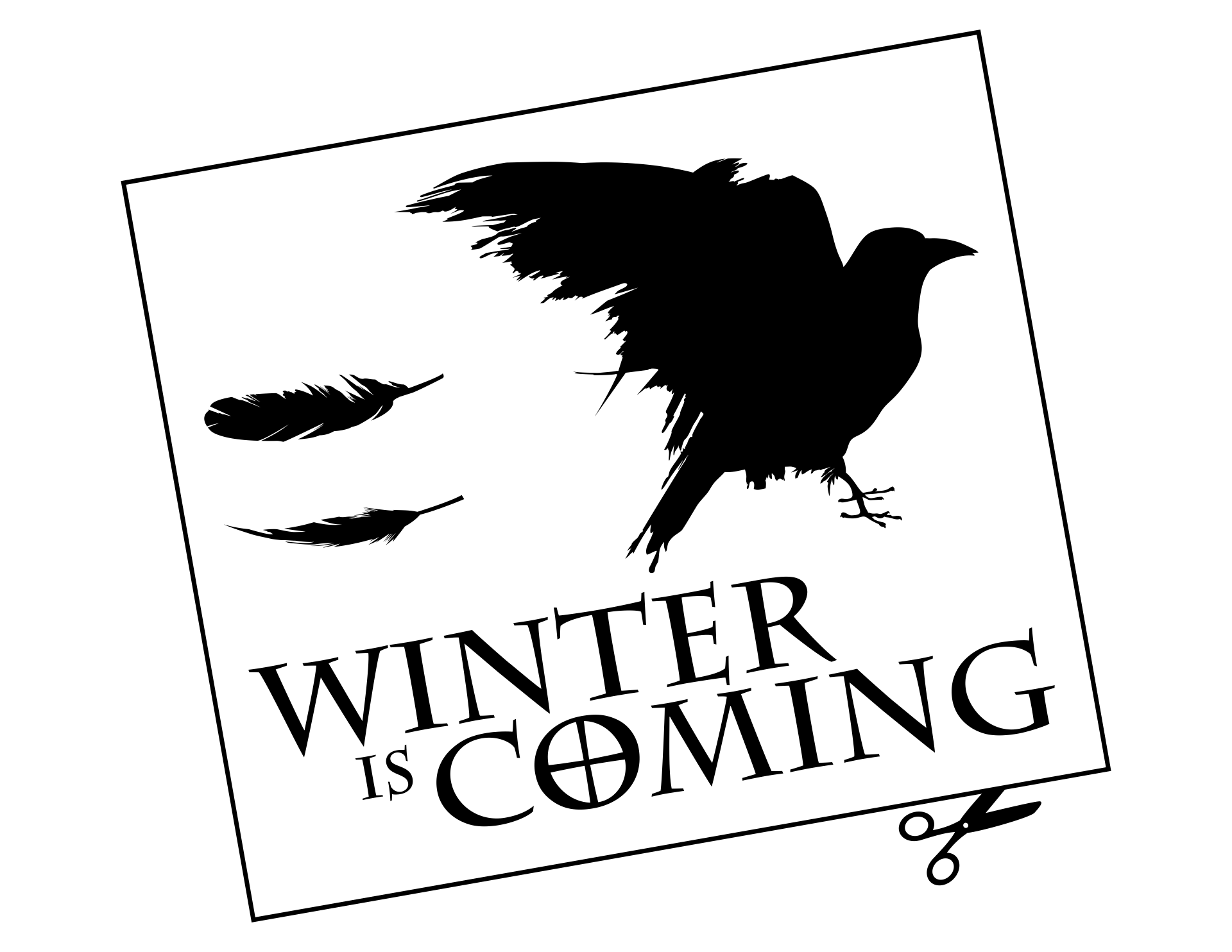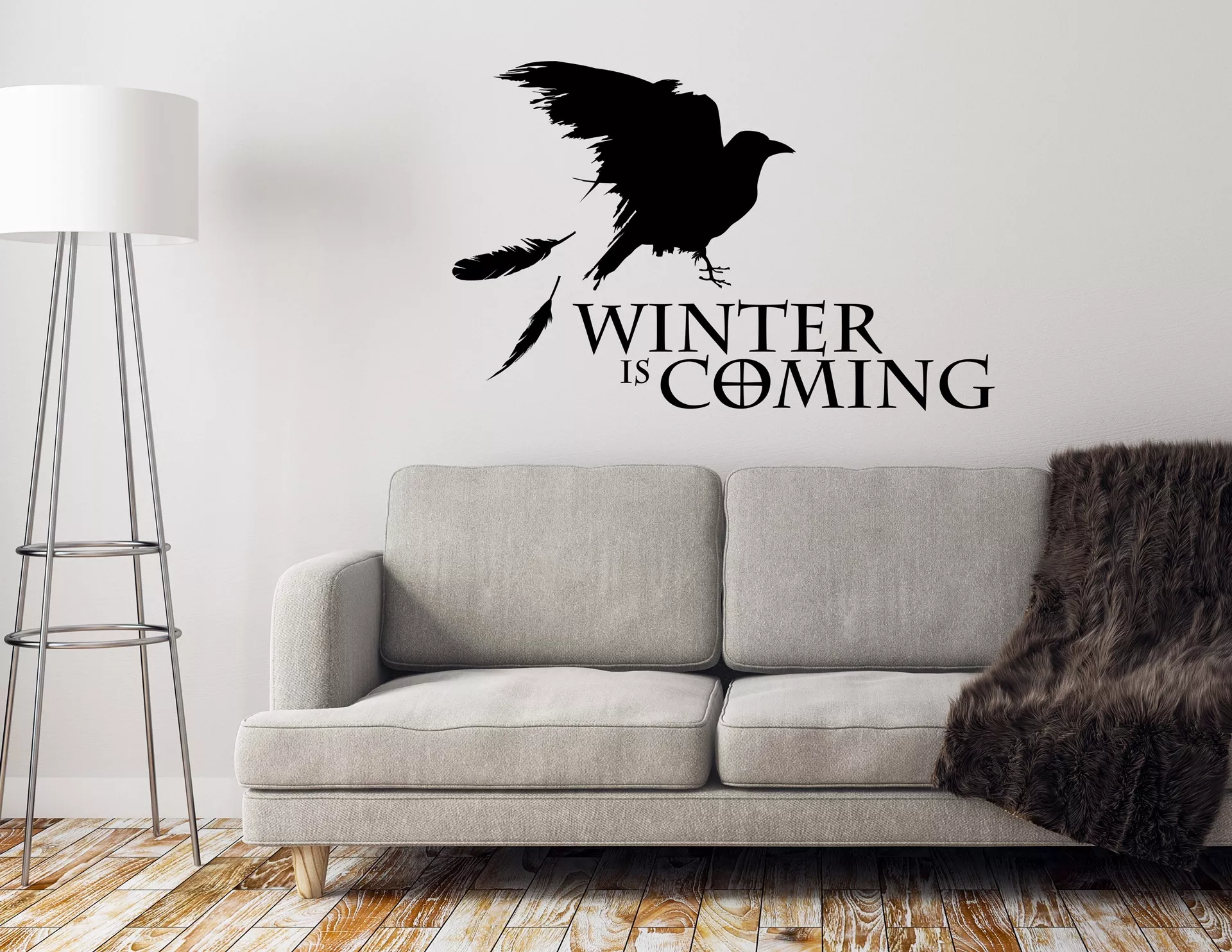 Wandtattoo – „Winter is Coming“! Das Design besteht aus einer Raben-Silhouette, zwei Federn und einem Schriftzug, der als Hauptzitat dieser Serie gilt.