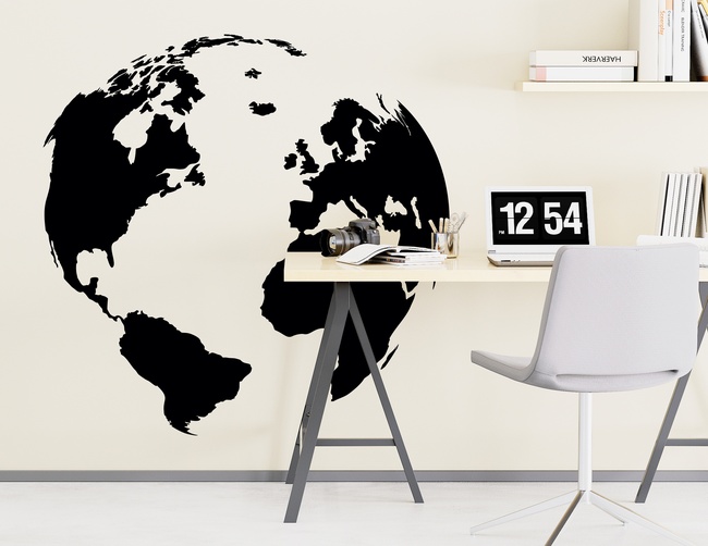 Das Wandtattoo „Fernweh“ zeigt auf eine puristische und kontraststarke Art den gesamten Erdball. Die runde Form ähnelt dabei einem Globus.