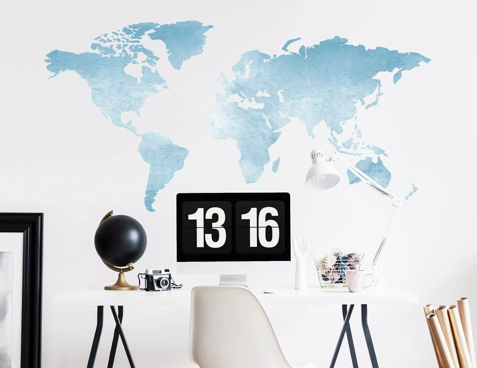 Infos & FAQ für Wandtattoo Weltkarte Blue Watercolor