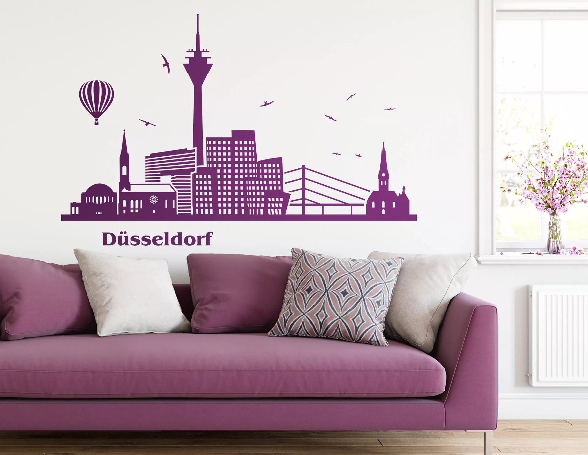Das Wandtattoo „Düsseldorfer Skyline“ zeigt die berühmtesten Bauwerke der traditionsreichen Stadt in Nordrhein-Westfalen.