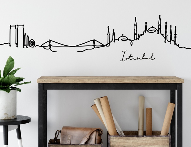 Anleitung für Wandtattoo Line-Art Skyline Istanbul
