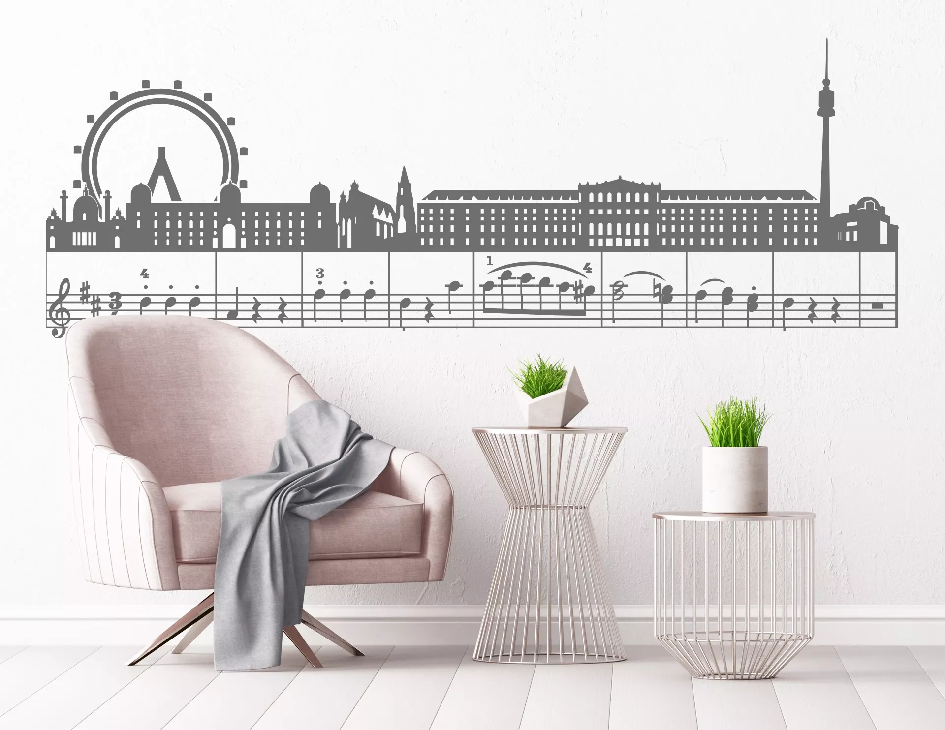 Eins, zwo, drei - Eins, zwo, drei - Im Dreivierteltakt und Walzerschritt ab nach Wien oder an Deine Wand! Wirklich charmant! Erlebe die Vielfalt Wiens mit unserem Wandtattoo "Skyline Wien". Wir bringen das klassische und moderne Wien als Wandaufkleber zu Dir nach Hause. Ein Wandtattoo, dass beides kann, Sehnsucht stillen und Erinnerungen an eine einzigartige Stadt wachhalten. Wir lieben Wien und finden, die Stadt ist zu jeder Jahreszeit eine Reise wert! Babatschi!