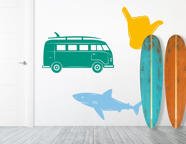 Unser Wandtattoo „Surfers Paradise“ ist nicht nur was für echte Surfer. Die klassischen Symbole bringen ein karibisches Flair in jeden Raum und sorgen für ein echtes Urlaubs-Feeling. So lässt es sich ganz leicht an ferne Meere, Ozeane und Strände träumen. Das macht das Wanddesign zur perfekten Dekoration für alle, die nicht genug vom Erkunden der Welt und beherrschen der Wellen kriegen können. Das Surfer-Wanddesign schafft in jedem Raum ein lockeres Ambiente, während die detailreichen Symbole schöne Akzente an der Wand setzen — ein echtes Highlight für jeden Betrachter.