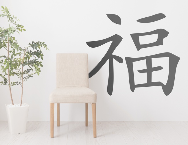 Wandtattoo „China-Happiness“ (engl. Happiness = Glück): Chinesische Schriftzeichen als Dekoration mit exotischem Flair.