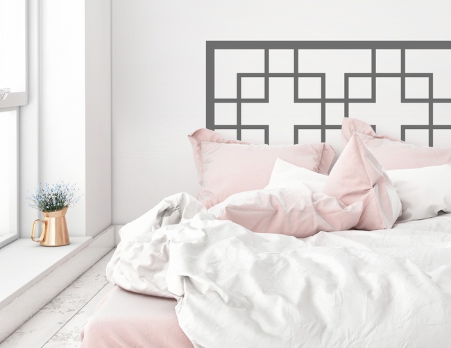 Aus Liebe zur Geometrie: Das Wandtattoo „Cubic Art“ verleiht Deinem Betthaupt einen quadratischen Look, der sich sehen lassen kann.