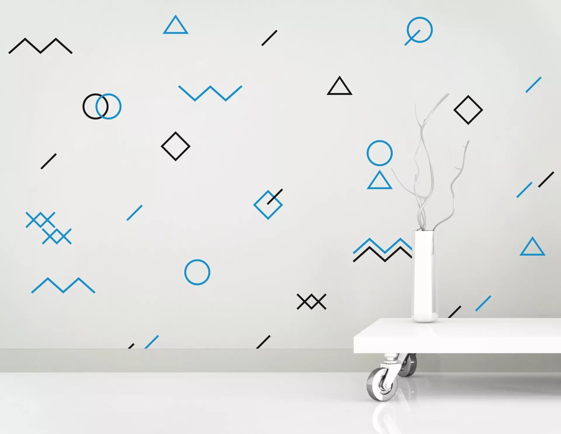 Dekorieren ohne Kitsch. Das Wandtattoo „Geomino“ mit den unterschiedlichen Formen kannst Du völlig frei gestalten. Hier ist Deine Kreativität gefragt.