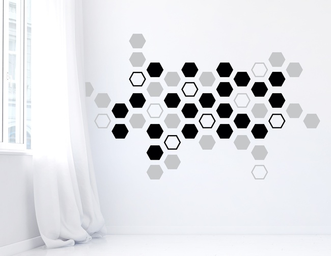 Das Wandtattoo “Honeycomb” greift die geniale Wabenstruktur auf und erhebt sie zur Kunst. Gestalte ganz individuelle Muster.