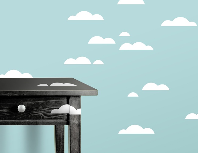 Einfach himmlisch: Das „Little Clouds“ Wandtattoo-Set. Die 36 kleinen Wölkchen lassen sich kinderleicht auf Wände, Möbel und Fenster kleben. Ein Himmelreich!