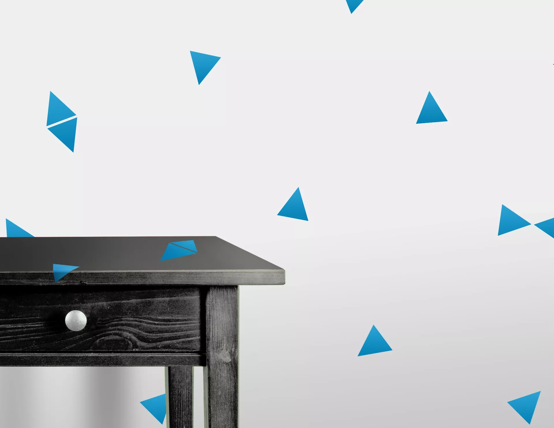 Triangulation ohne Ende! An der Wand, auf dem Tisch, dem Stuhl, Regal... Die geometrische Methode zur Verschönerung Deiner vier Wände. In Deiner Wunschfarbe!