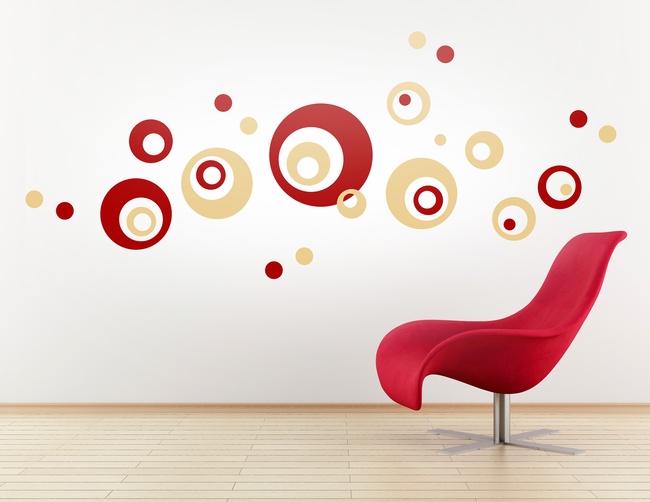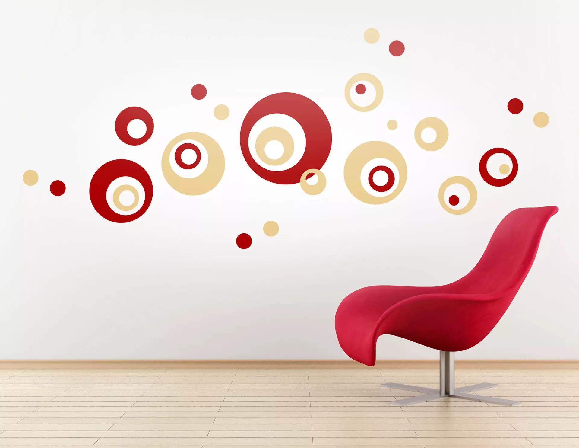 Retroflair für die Wände: Das Wandtattoo „Retro Circles“, die fröhliche Raumdekoration für Dein Zuhause. Retro Muster kommen nie aus der Mode.