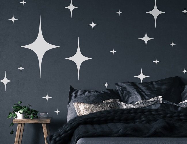 Eine Prise Sternenstaub à la Las Vegas: DIY Wandtattoo "Stardust" mit vielen großen und kleinen rautenförmigen Sternen zum selbst verkleben.