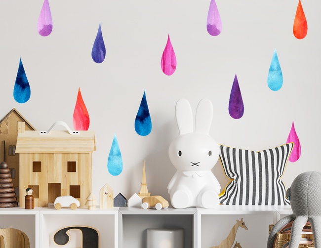 Ein kleiner Regenguss stört uns nicht, sondern macht glücklich und lässt uns hoffen, bald einen wunderschönen Regenbogen zu sehen. Und wenn die Tropfen dann so schön aussehen, wie die von unserem wasserfarbenen Wandtattoo Watercolor Raindrops, macht so ein Regentag gleich noch mehr Spaß.