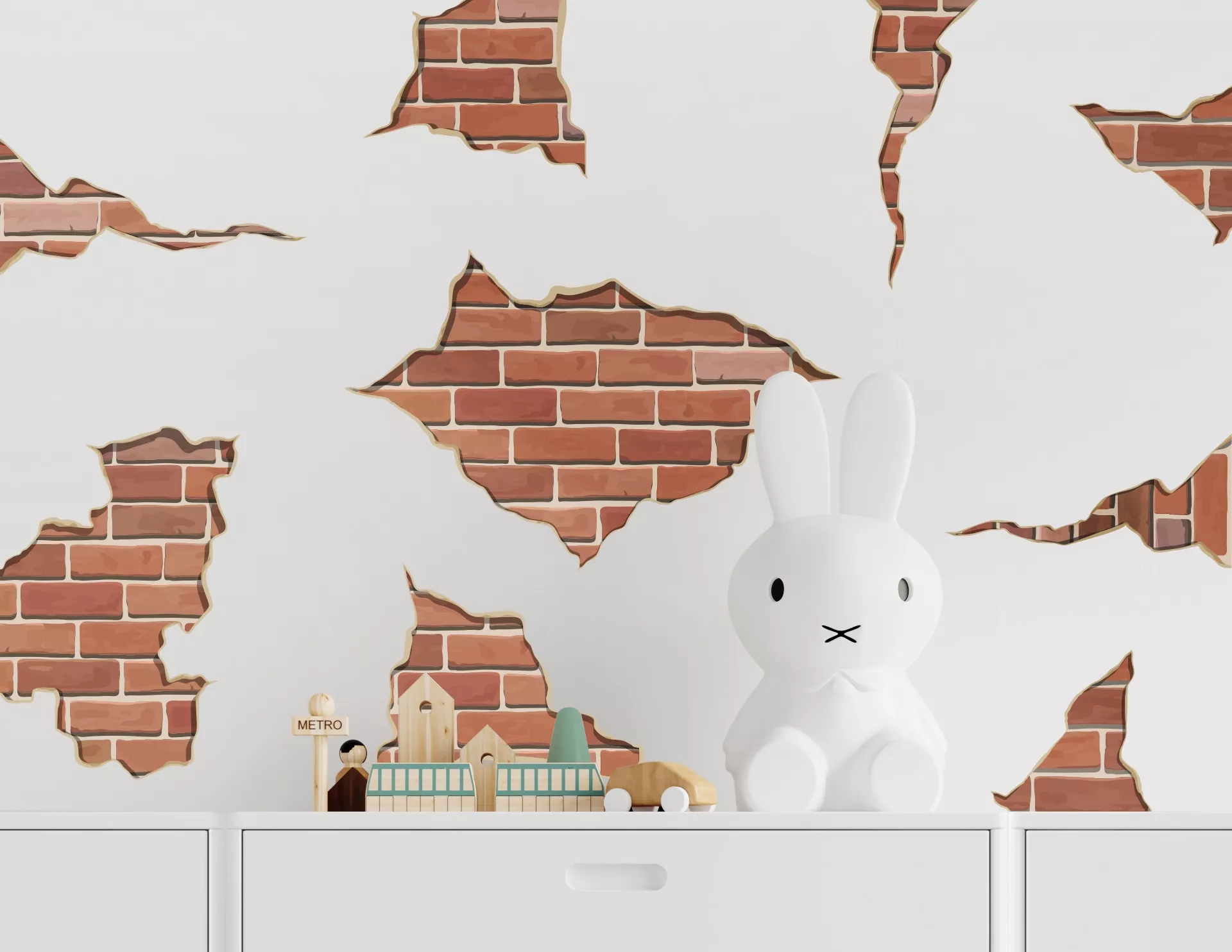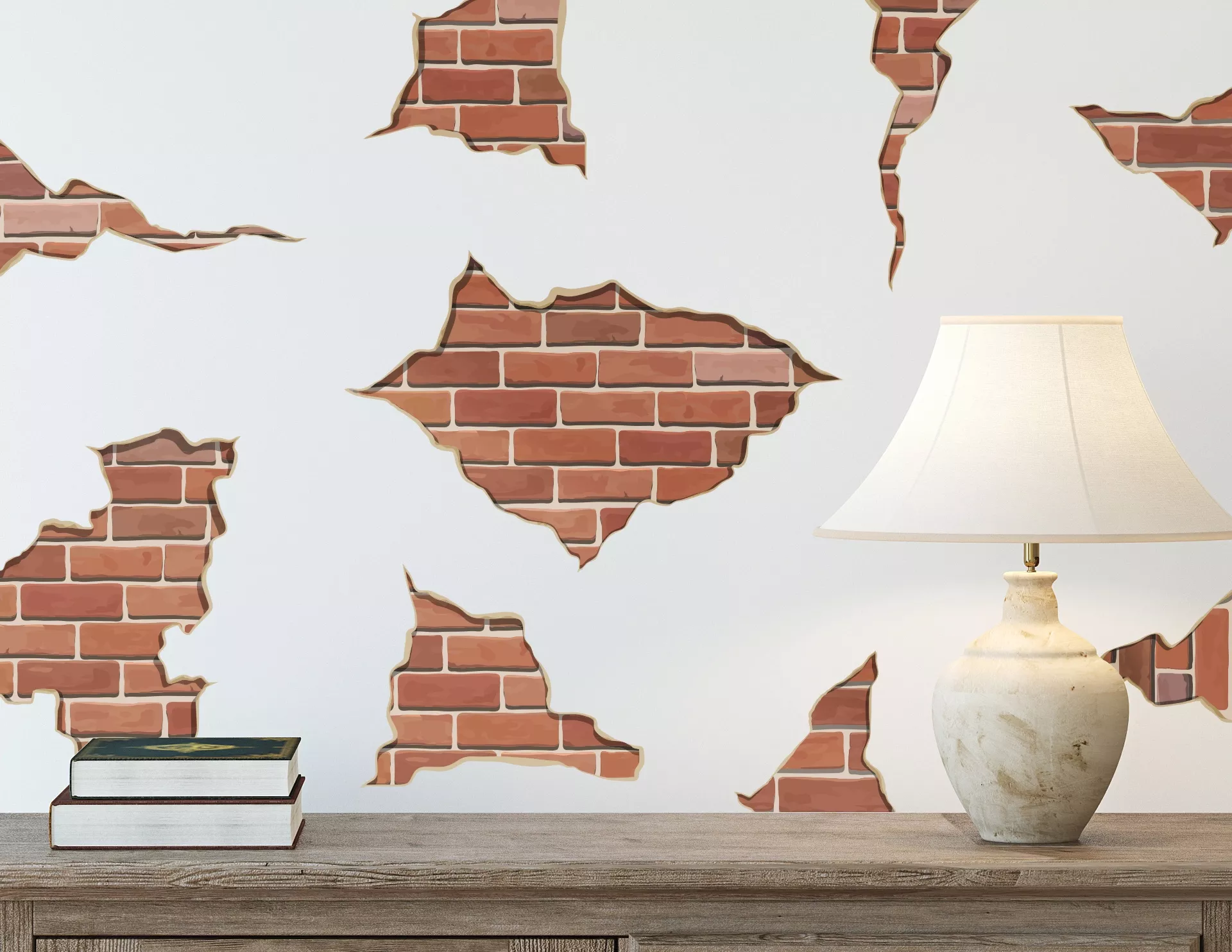 Wenn Dein Motto 'Kein Tag ohne DIY' lautet, ist unser 9-teiliger „Ziegel-Zauber“ zum Aufkleben genau das Richtige für Dich. Eine Einladung zum Kreativwerden also, denn mit dieser handgemalten Illustration von freigelegten Mauerstücken kannst Du Dir im Nu einen rauen, unverputzten Hintergrund zaubern.