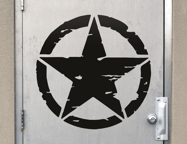 Feindliche Übernahme zwecklos: Wandtattoo "Grunge Military Star" mit eingekreistem, fünfzackigen Stern in coolem Militär-Look.