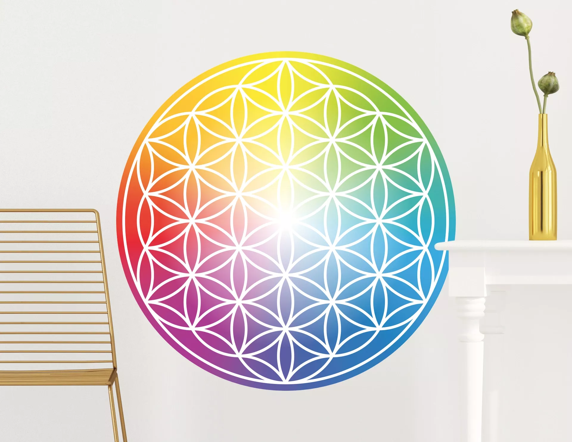 Wandtattoo "Blume des Lebens farbig" – ein Symbol für Schutz, Harmonie und Lebensenergie.