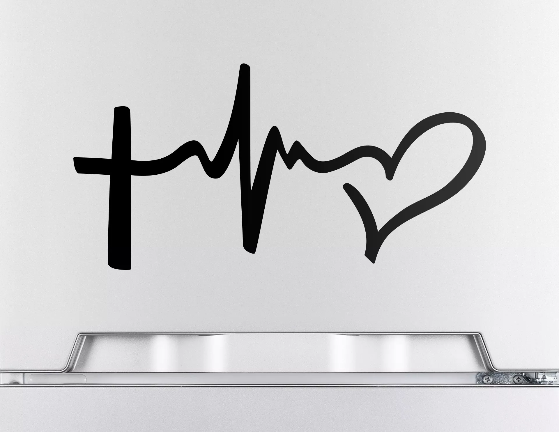 In enger Verbindung: Wandtattoo Glaube-Liebe-Leben mit dem Kreuz, Pulsschlag und Herz.