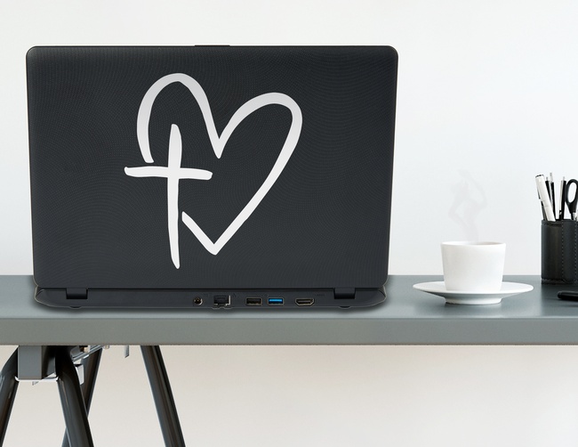 Wer Religion und Glauben elegant zum Ausdruck bringen möchte, kann neben Christenfisch und Kruzifix jetzt auch zum Wandtattoo greifen. Die moderne Interpretation des christlichen Symbols aus Kreuz und Herz schafft zuhause eine hoffnungsvoll-religiöse Stimmung. Beten zu Gott kann nun also auch unter einem zeitgenössischen Glaubensbekenntnis wie unserem Wandsticker Gott im Herzen erfolgen.