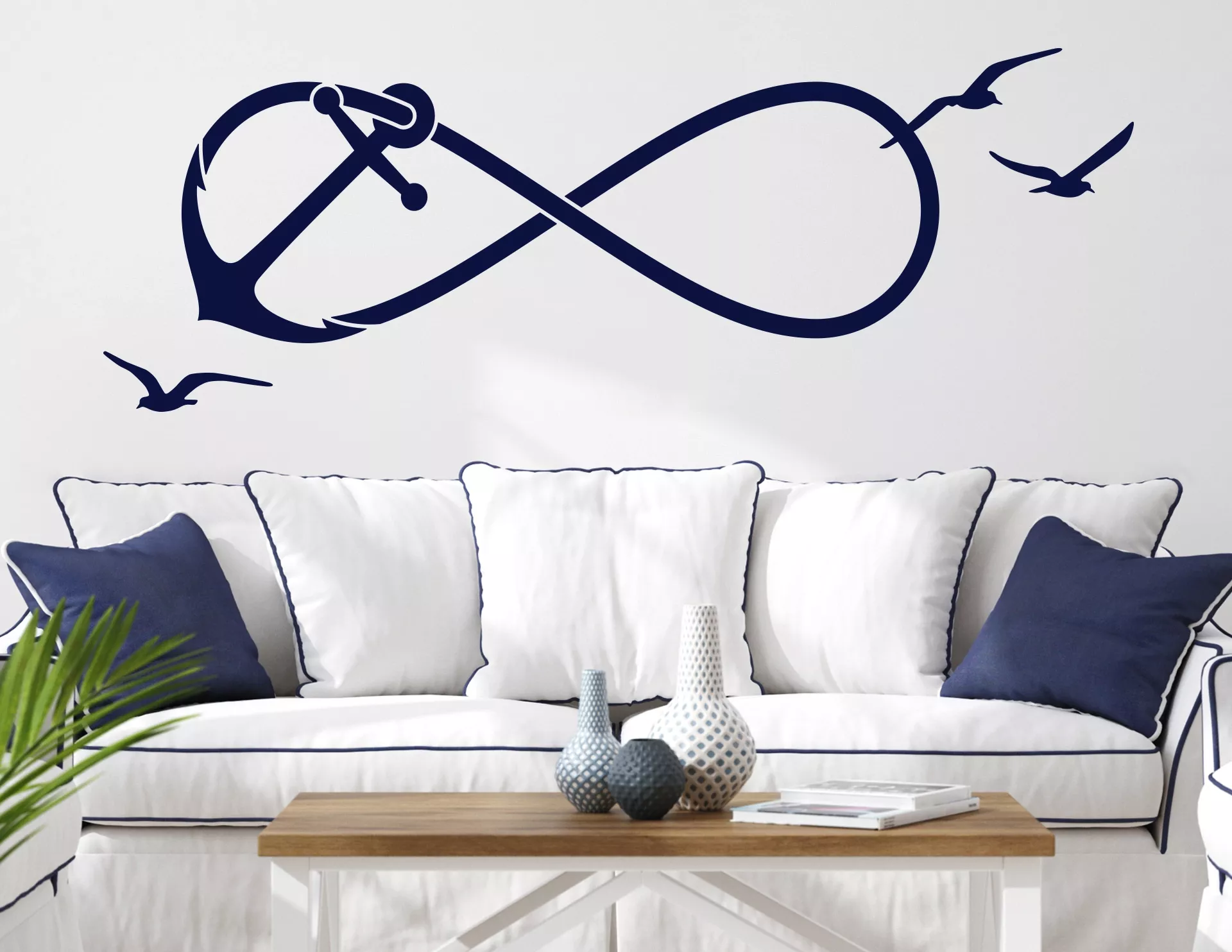 Nicht nur an der Küste oder im Kiez macht sich dieser Motiv-Aufkleber damit ausgesprochen gut, sondern auch bei allen, die das Meeresrauschen auf ewig im Herzen tragen – unser Wandtattoo "Infinity Anker"! Hättest Du's gewusst: Das Unendlichkeitszeichen (auch Lemniskate genannt), ist eine schleifenförmige, geometrische Kurve in der Form einer liegenden Acht, welche visuell die absolute Unendlichkeit symbolisiert.