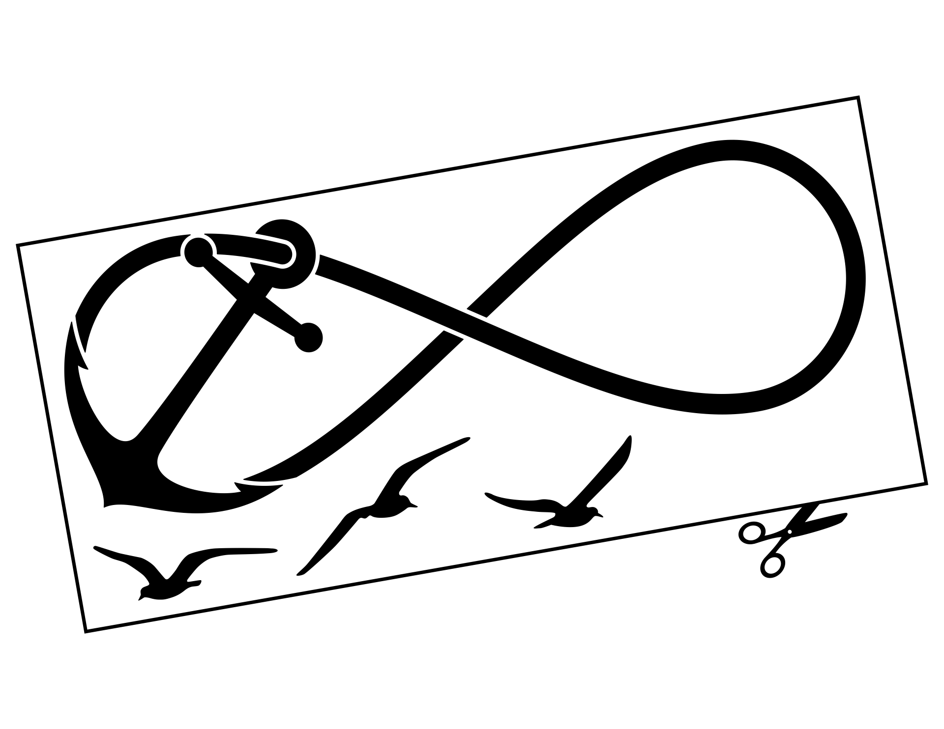 Das Unendlichkeitszeichen 'Infinity' hat nicht nur eine starke Bedeutung, es sieht auch ziemlich eindrucksvoll aus. Besonders, wenn es wie in diesem Fall mit Möwen und einem Anker maritim verziert ist.