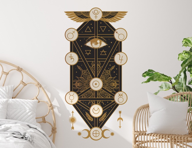 Esoterik, Magie & viele Geheimnisse! Die Kabbala (zu dt. 'das Überlieferte') ist eine uralte jüdische Tradition, die uns lehrt, Glück und Erfüllung zu finden. Wer außerdem nach Spiritualität sucht, der kann mit einem religiösen Studium von hebräischer Sprache sowie der Tora beginnen und wird bald mehr, um die Mystik des Lebensbaumes und der 10 Sephiroth wissen. Als Anschauungsobjekt dient unser Wandtattoo "Kabbala - Baum der 10 Sephiroth": Ein Symbol aus der heiligen Geometrie in Tarotkarten-Optik mit zehn Ziffer-Scheiben samt Mond, Sonne, Auge und Flügeln für Wand, Möbel oder Türe.