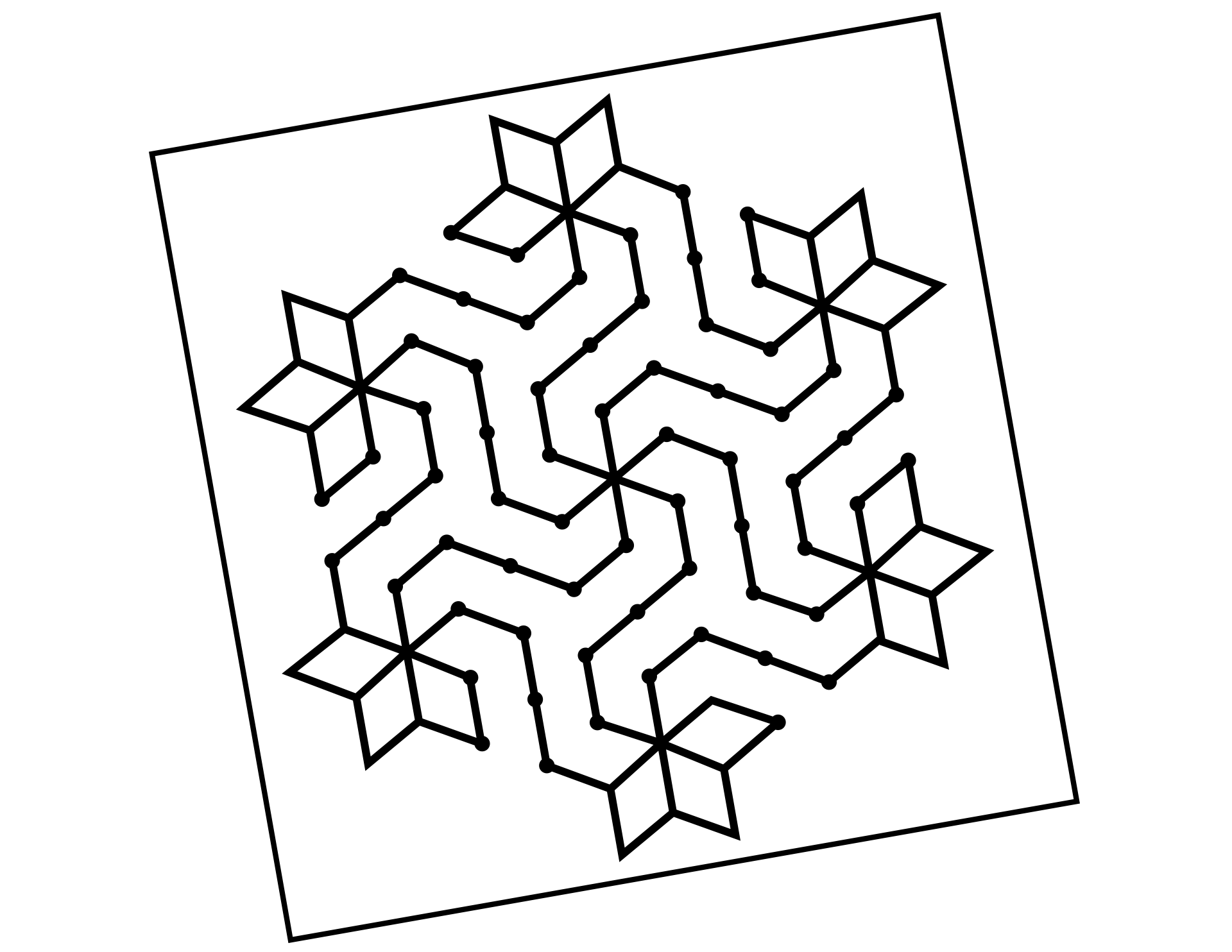 Als „Kolam“ wird ein zentrisch symmetrisches Muster bezeichnet, das viele Frauen in Südindien täglich mit weißem Reismehl anferitgen.