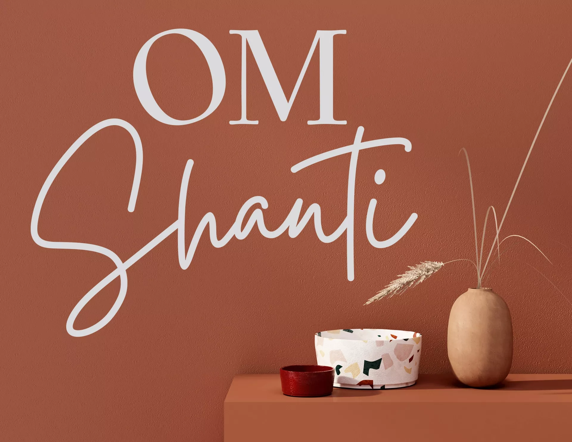 Für ein kleines bisschen mehr „inneren“ Frieden: Wandtattoo Om Shanti. Dein Zuhause einfach & stilsicher dekorieren, mit grafischen Letterings und good Vibes only.