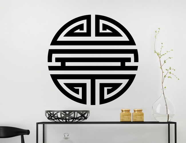 Das chinesische Zeichen „Shou“ steht für ein langes, gesundes und erfülltes Leben. Zumeist wird es im Eingangsbereich oder im Flur aufgehängt.