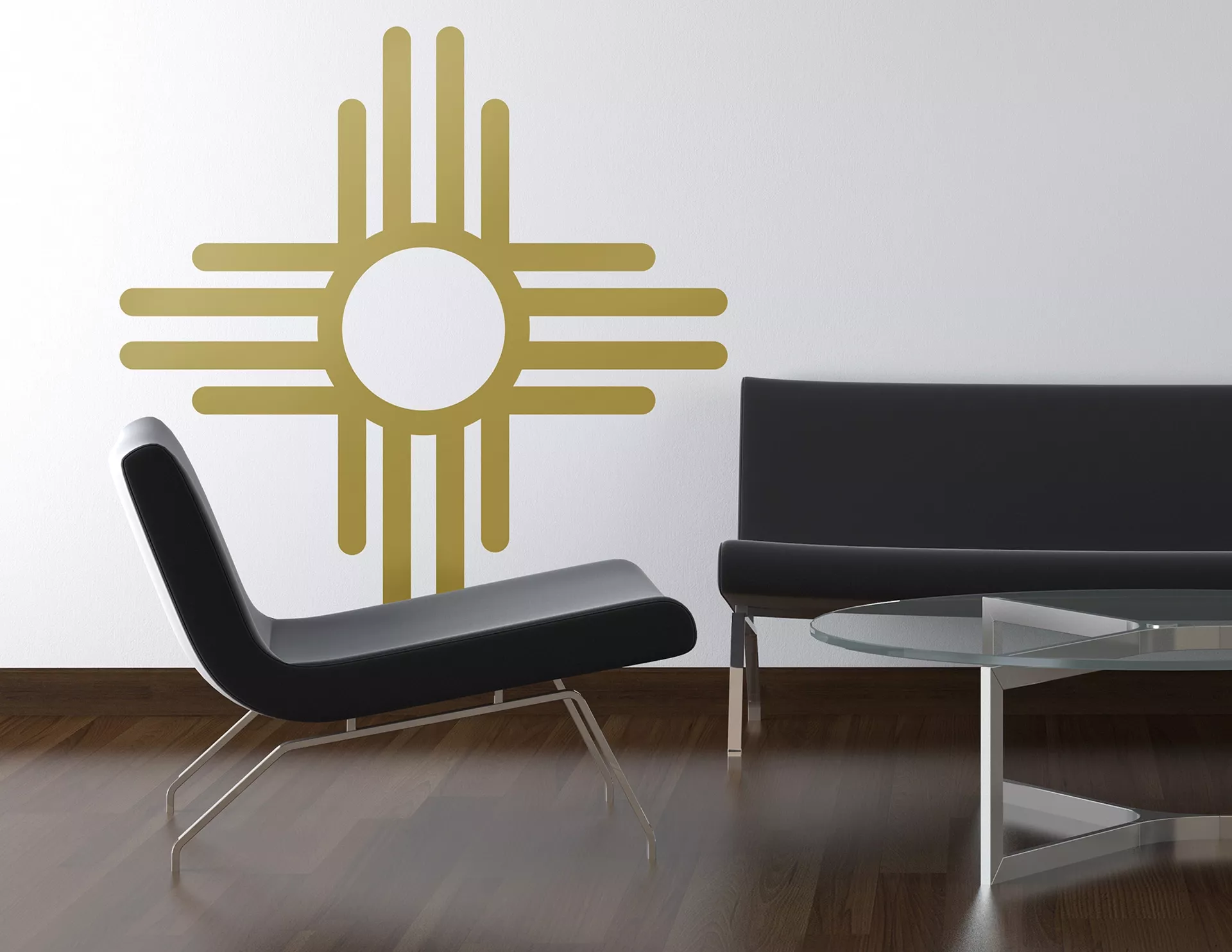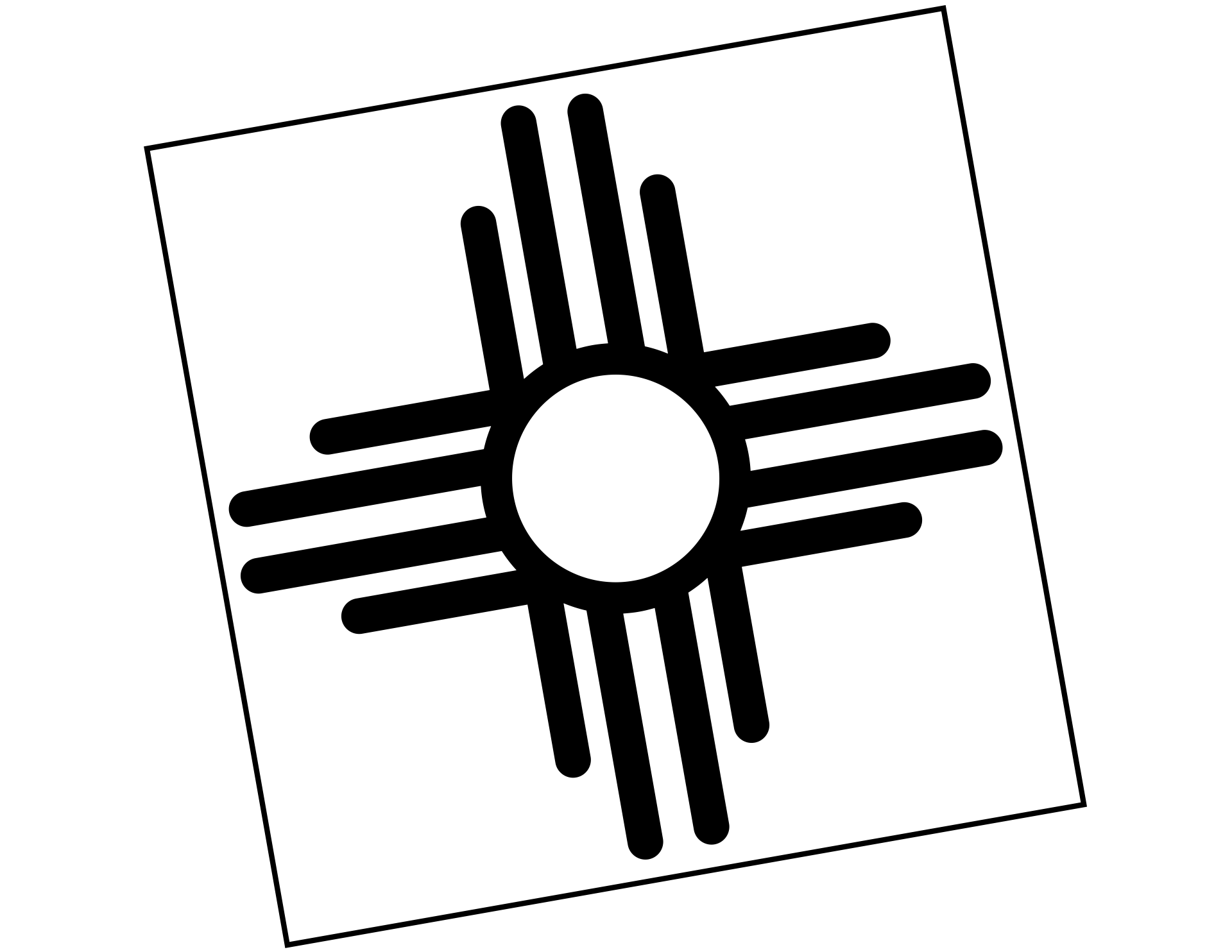 Die Sonne des indigenen Volkes der Zia ist auf der Flagge des amerikanischen Bundesstaates New Mexico abgebildet. Die vier Arme stehen für: Die Jahreszeiten, den Tag mit Sonnenauf- und Untergang, das Leben mit Geburt und Tod, die Himmelsrichtungen, Norden, Süden, Osten, Westen und werden durch den Kreis verbunden.