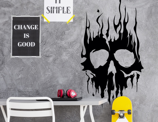 Zur Unsterblichkeit verdammt – Wandtattoo "Burnt Skull": Ein schaurig schöner Motiv-Aufkleber mit einer gruseligen Feuer-Fratze, welche nicht nur an Halloween für Furcht & Gänsehaut sorgt.